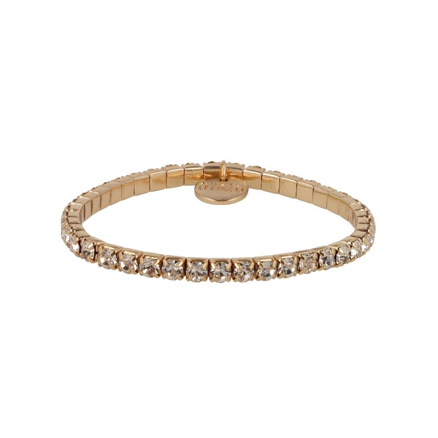 Ben jij klaar om jouw outfit een flinke dosis glamour te geven? Deze prachtige gouden armband bezet met fonkelende Swarovski kristallen brengt luxe binnen handbereik! Niet alleen mooi, maar ook nog eens super comfortabel dankzij de elastische band. Bovendien is hij met zijn 24kt. gouden beplating een echte blikvanger. 🌟