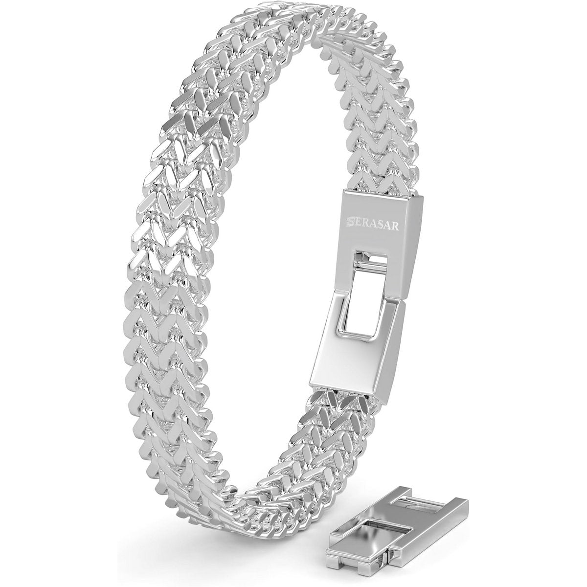 Onze elegante en robuuste herenarmband is de definitie van klassieke schoonheid vermengd met een vleugje moderne robustheid. Het is meer dan alleen een sieraad; het is een upgrade voor elke outfit. Van casual tot formeel, deze armband vult jouw persoonlijke stijl aan en tilt deze naar een hoger niveau.