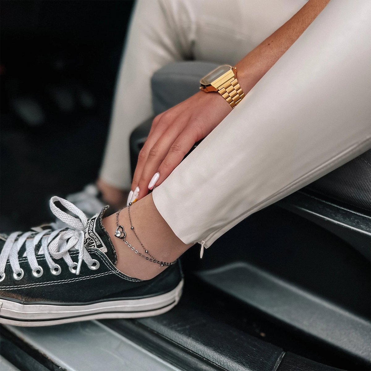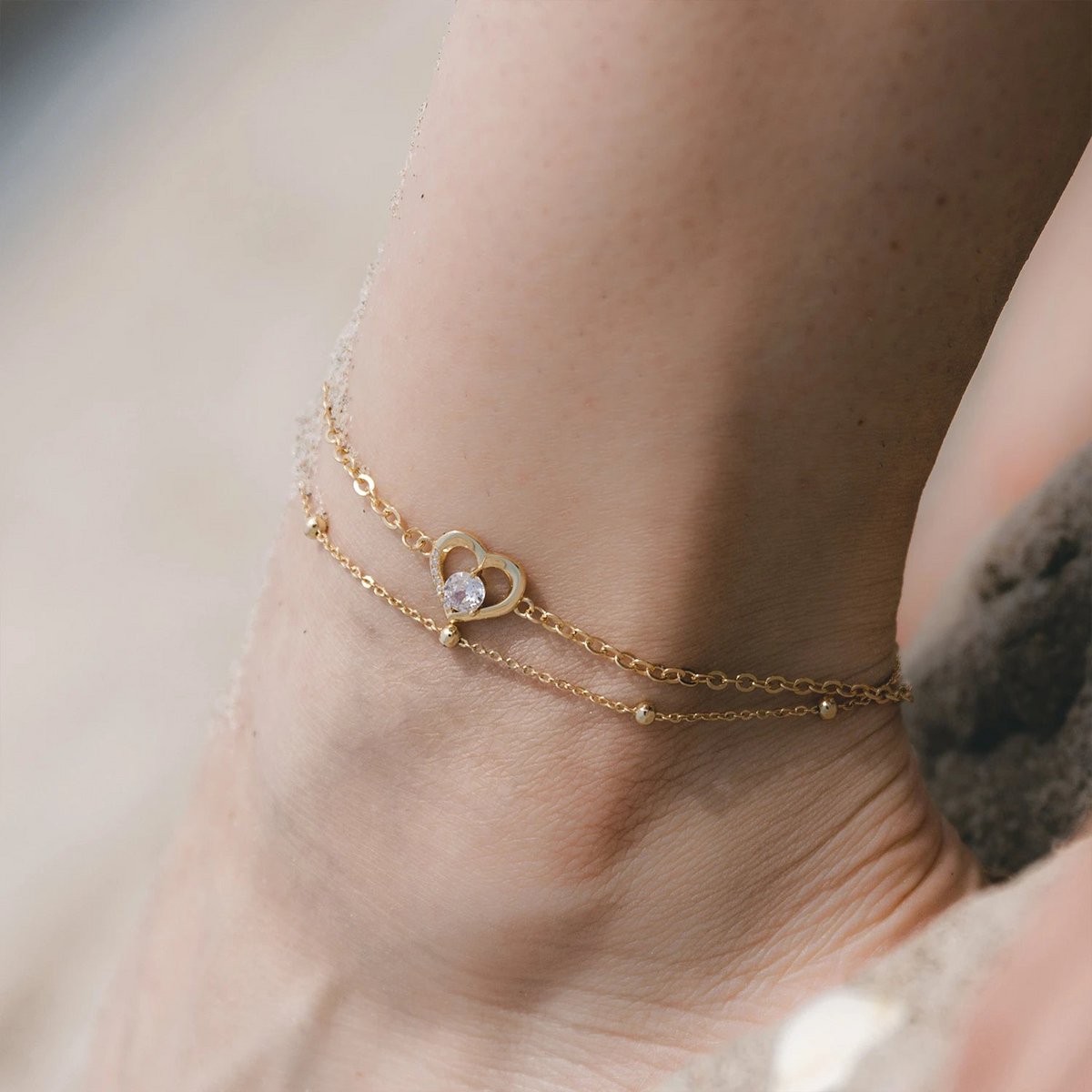 Laat je enkel stralen met ons stijlvolle Enkelbandje voor dames. Vervaardigd uit het mooiste 925 sterling zilver, valt dit enkelbandje op door het liefdevolle, elegante hartje en de schitterende 'AAA' zirkonia-stenen. Dit is niet zomaar een enkelbandje; het is een uiting van klasse en verfijning.