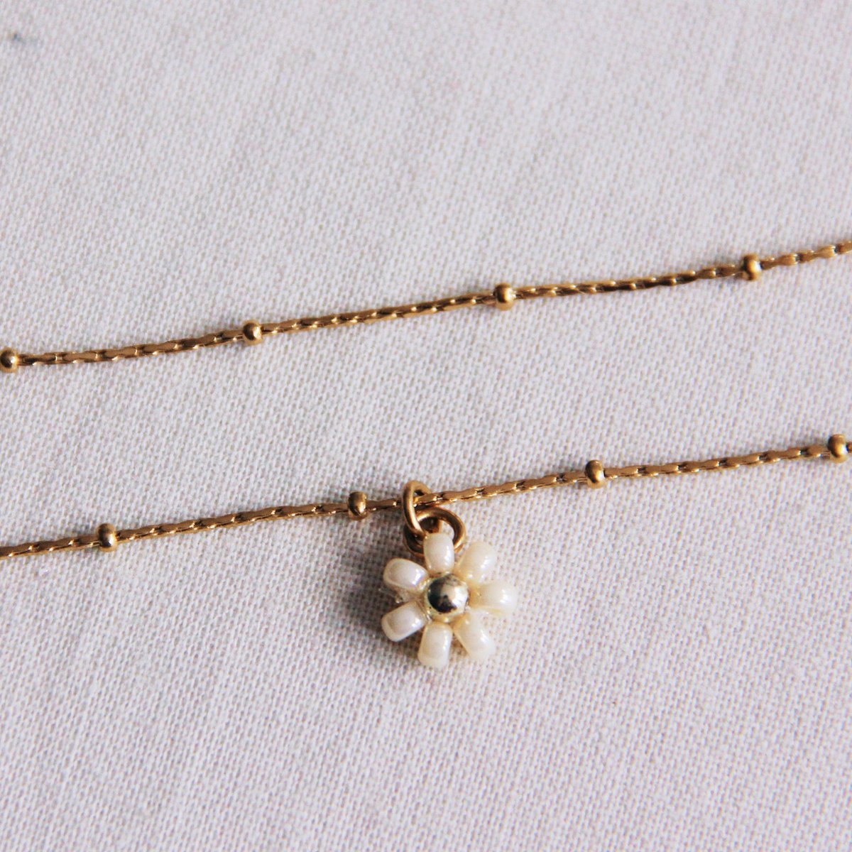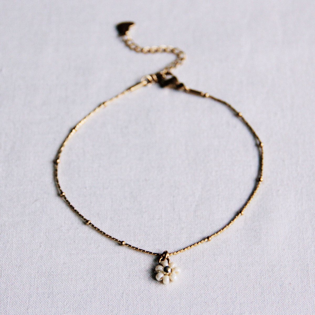 Fijn enkelbandje van roestvrij staal met madeliefjebloem – crème/goud