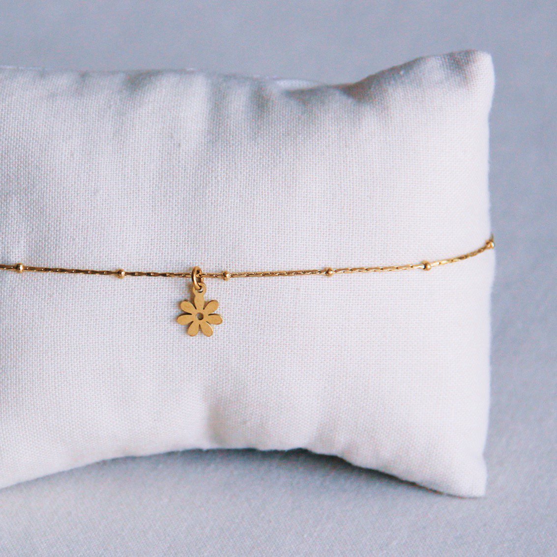 Fijn enkelbandje van roestvrij staal met madeliefjebloem β goud