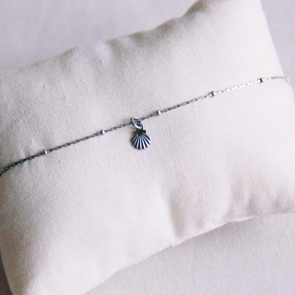 Fijn enkelbandje van roestvrij staal met mini-schelp β zilver