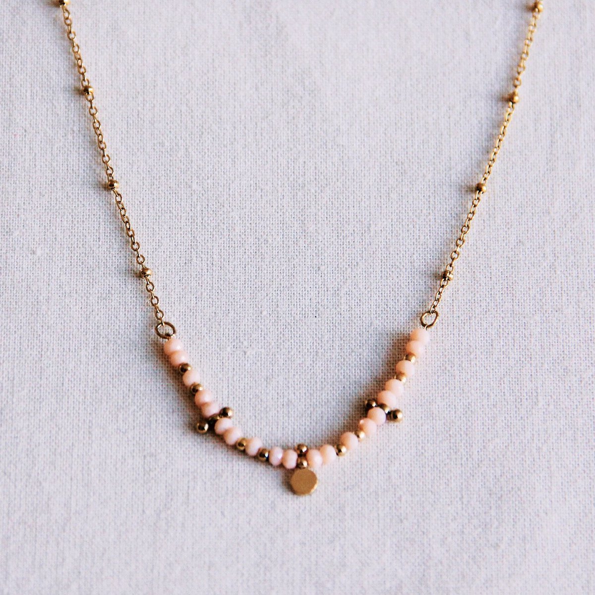 Fijne roestvrijstalen ketting met mini facetten en kralen - nude/goud