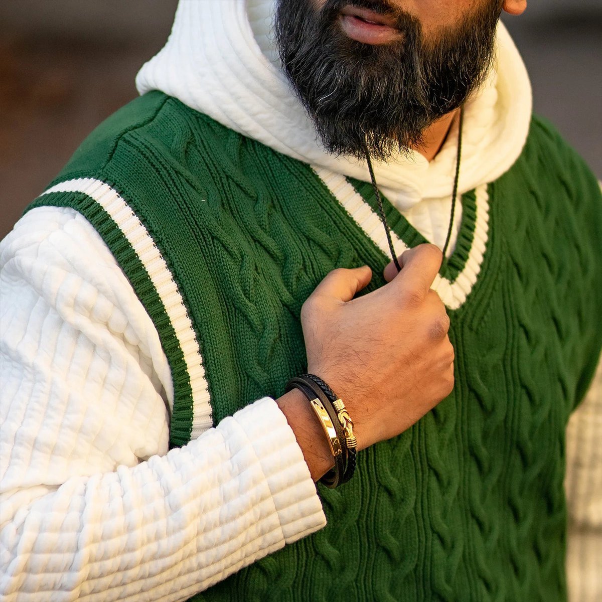 Of je nu een dagje uit bent of een belangrijke vergadering hebt - met onze leren armband voeg je altijd iets speciaals toe aan je verschijning. 😎 Voel je elke dag geweldig met deze must-have aan je pols!