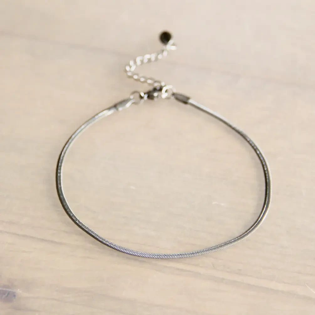Roestvrijstalen enkelband plat snake - zilver - AN910