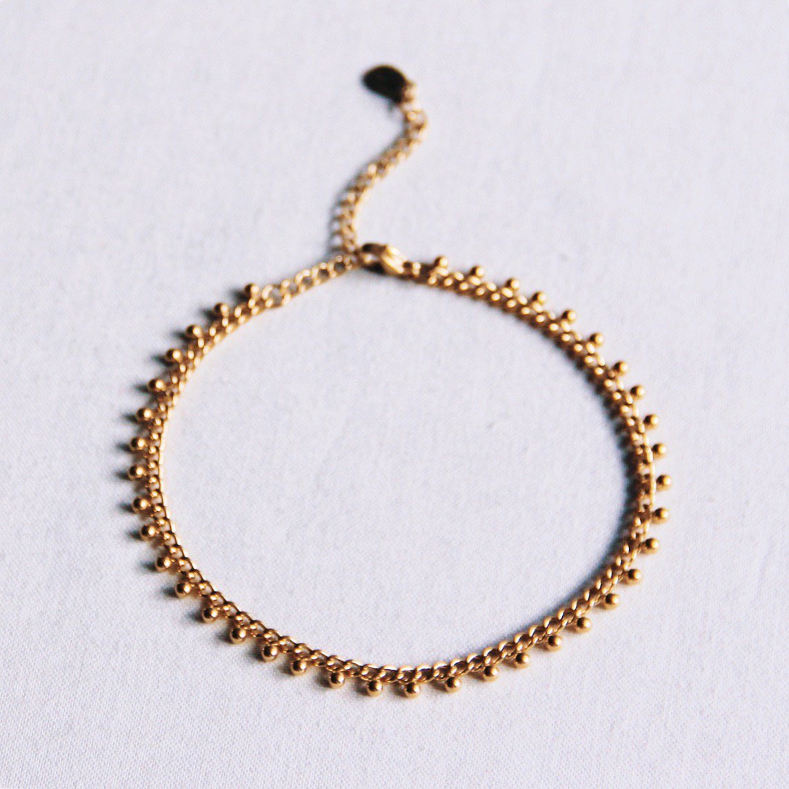 Roestvrijstalen enkelbandje met balletjes - goud - AN916